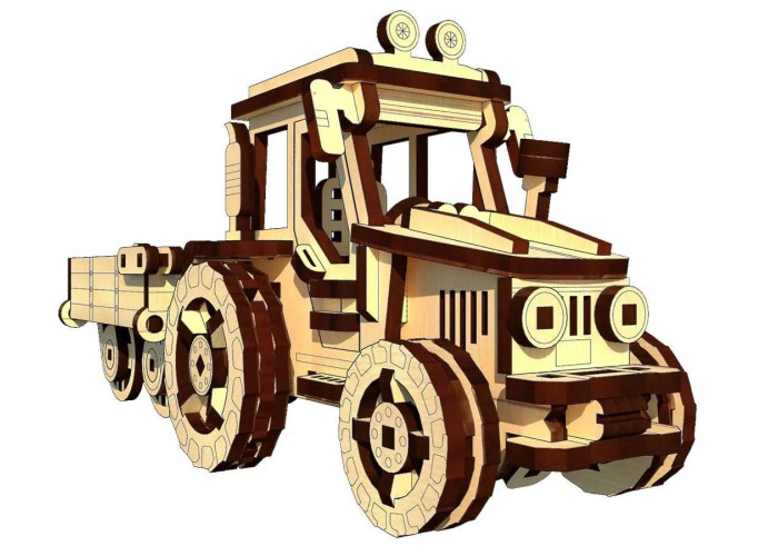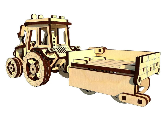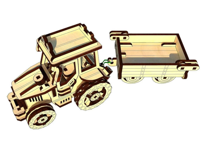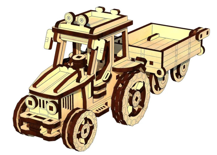 Здійсніть подорож на ферму з нашим дерев’яним конструктором трактора з причепом.
