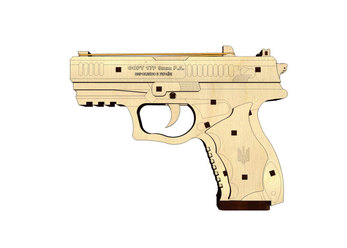 Найпопулярніший пістолет українського виробництва Форт-17 поповнить вашу унікальну колекцію дерев’яних 3D-конструкторів “Війна в Україні” Це не просто іграшка з дерева, яка обмежена уявним прицілюванням і уявними пострілами, він і справді має заряд із трьох “патронів”! Це дуже весело і цілком безпечно. Обіцяємо, ніхто не постраждає.
