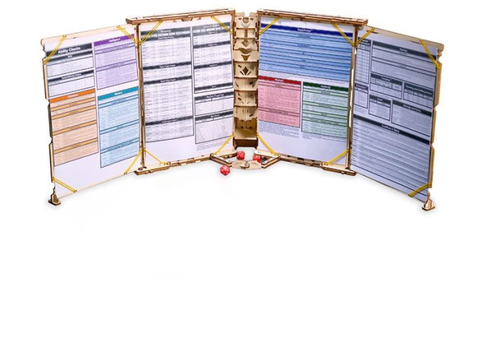 Практичний і гарний аксесуар простий у складанні і зручний у використанні. Дизайн різьблених панелей Ширми в стилі «фентезі» прикрасить і урізноманітить вашу гру. Візьміть в руки Ширму Майстра і відчуйте себе справжнім вершителем долі, власником сакрального фоліанта про великих героїв і захоплюючі пригоди.