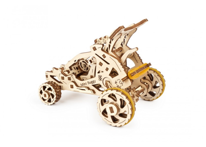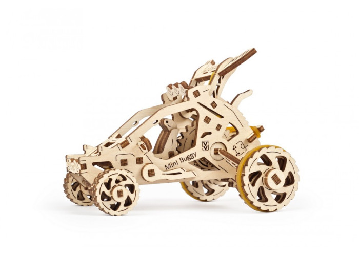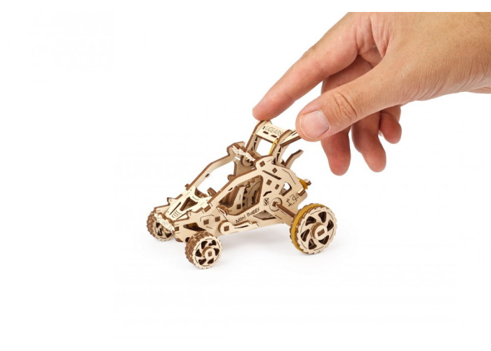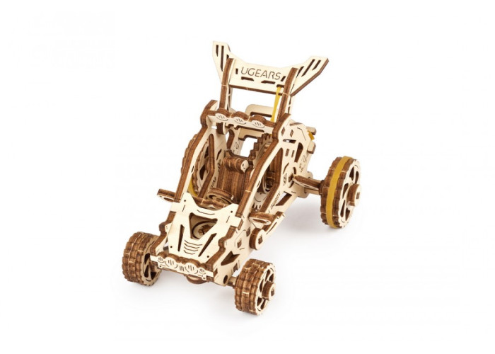 Якщо ви початківець у світі розумних механізмів Ugears, Пустельний Баггі – одна з моделей, яка підійде для першого знайомства якнайкраще. Вона має набагато менше деталей, ніж більш складнi моделi, але тим не менше, складання Баггі – процес захопливий і цікавий. Дотримуйтеся покрокової інструкції, яку знайдете в коробці з моделлю. Там є також все необхідне – моделі Ugears складаються без клею або додаткових інструментів.