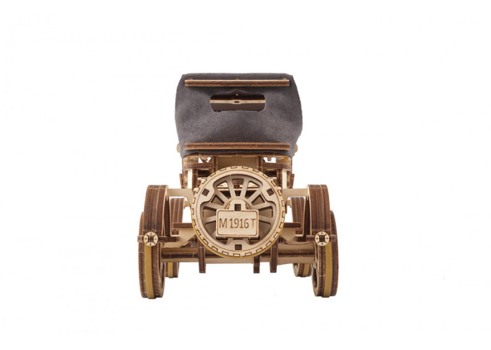 Команда інженерів та дизайнерів Ugears розробила особливу класичну модель автомобіля, аби занурити вас у ті часи. Цікаві особливості моделі включають: функціональний відкидний дах із тканини, фіксацію дверей кабіни, що відчиняються, капот, що піднімається, демонструючи функціональний 4-циліндровий двигун з колінчастим валом, маятник, що імітує звук гуркотливого мотора, передні колеса, які повертаються за допомогою керма, та запасне колесо, встановлене у задній частині автомобіля. Щоб запустити Ретро автомобіль UGR-T, встановіть кнопку «Пуск/Стоп» у положення «Стоп» і заведіть двигун із пружинним приводом за допомогою вбудованого ключа під шасі. Поставте модель на пласку поверхню, тримаючи її однією рукою, натисніть «Пуск», потім відпустіть і подивіться, як вона рушає. Автомобіль має передню, нейтральну та задню передачі.