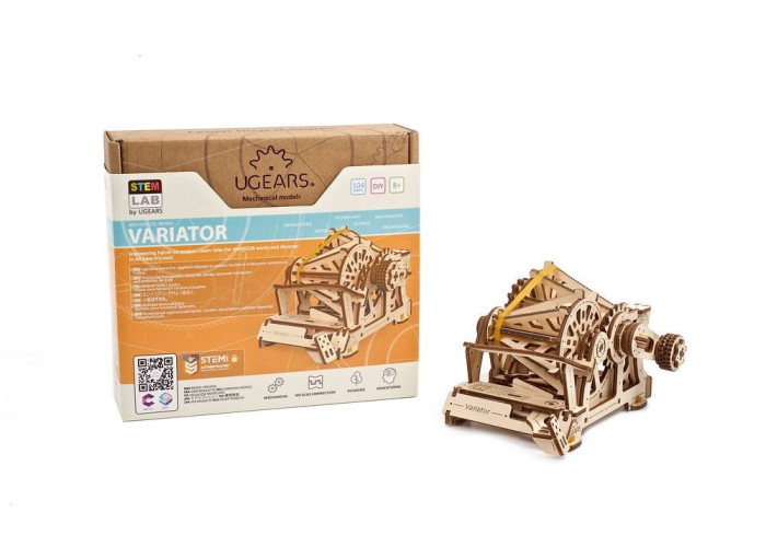 Варіатор - це пристрій, який передає і регулює крутний момент двигуна, змінюючи передавальне відношення. Передавальне відношення може змінюватися автоматично, вручну або в рамках заздалегідь заданої програми. Водії і автолюбителі найчастіше використовують термін «безступінчата трансмісія» або «варіатор». З 3D-пазлом Варіатор з колекції Ugears STEM lab ви можете вивчити одну з найважливіших частин автомобіля і зрозуміти, як вона працює, не забруднивши руки машинним маслом!