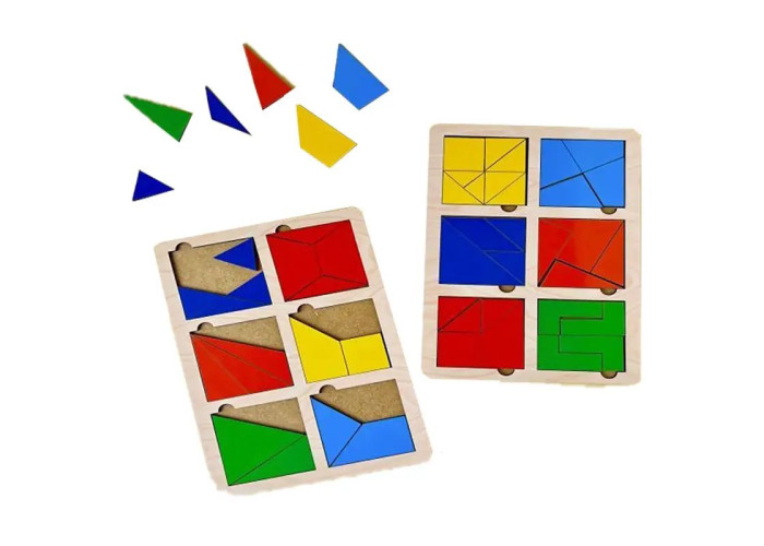 Сутність даної методики: дитині потрібно скласти квадрат з різнокольорових шматочків різної форми. А потім скласти квадрат одного кольору чи кількох певних. Граючи, дитина знайомиться із сенсорним сприйняттям, співвідношенням цілого та частини, розвивається логічне та творче мислення. З різнокольорових деталей можна створити контури предметів, тварин чи людей. А увімкнувши фантазію, можна створити й цілу незвичайну картину.
