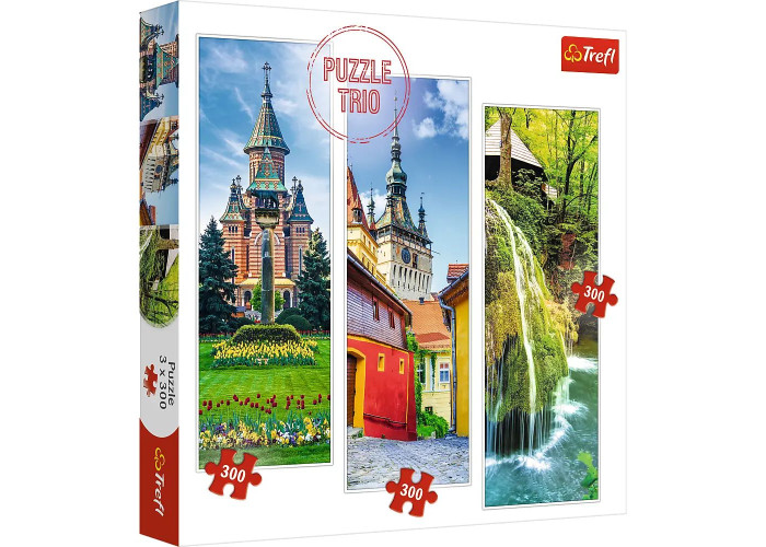 Пазли тріо 3х300 Водоспад Бігар, площа Перемоги, Сігішоара, Румунія від польського виробника Trefl