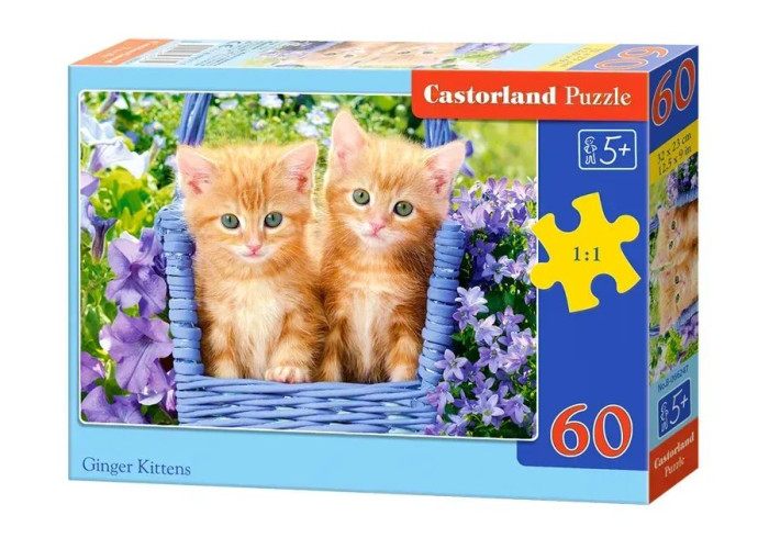 Пазли Castorland 60 елементів "Жваві кошенята" у зібраному стані має розмір картини 32 x 23 см. Найчастіше відповідає віковій групі 5+.