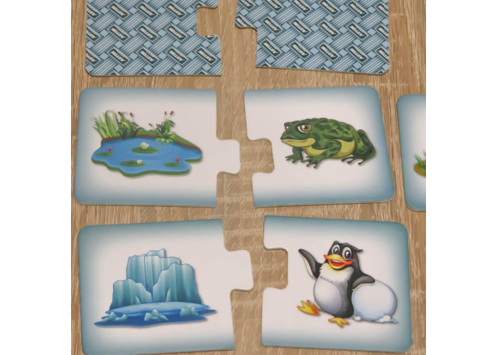 Настільний пазл «Чий Будиночок» представляє собою дидактичну мозаїку для дітей. У неї входить 30 картонних карток, кожна з яких складається з двох елементів. На половинках зображені знайомі дітям персонажі, до яких потрібно підібрати пару із зображенням відповідної хатинки.