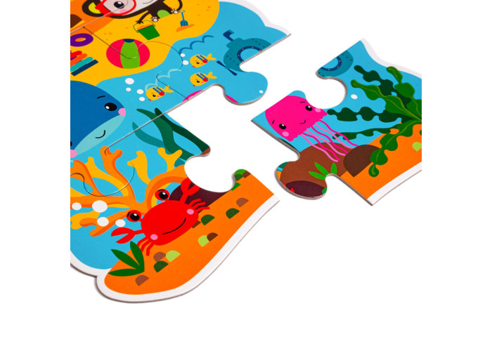 Пазл виготовлено з якісного та міцного картону. Всі деталі великі і зручні для дитячих ручок.
