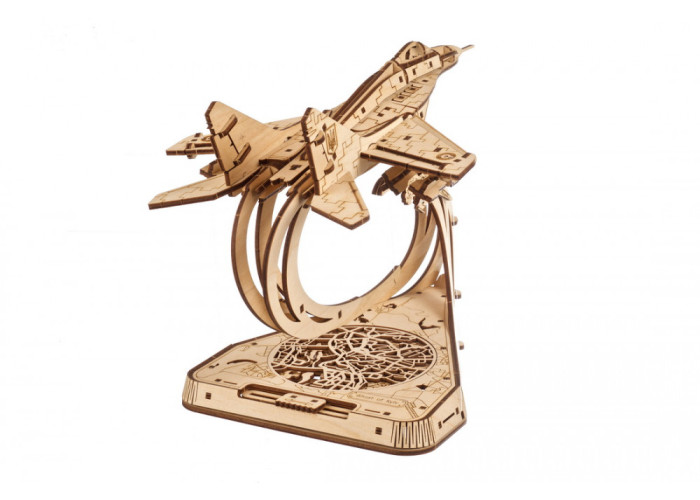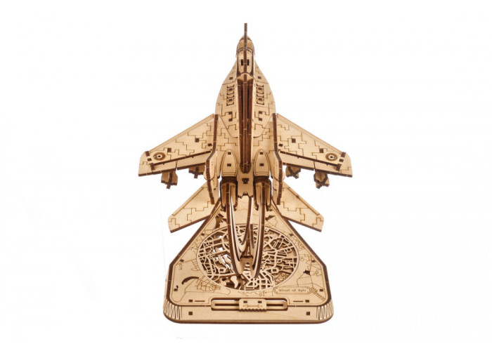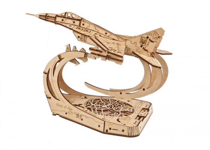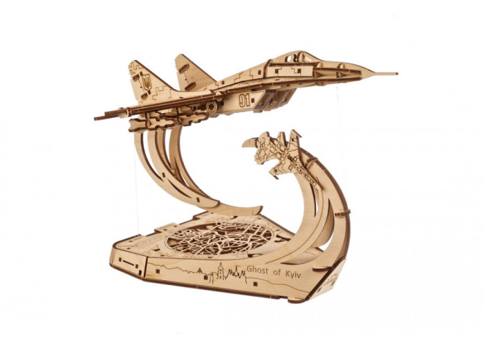 Ugears пишається тим, що є українською компанією та оживляє сучасну українську легенду в цій моделі винищувача МіГ-29 у масштабі 1:72, яким керував легендарний Привид. Модель вирізняється реалістичністю: рухомими елеронами, закрилками та хвостовими рулями, висувними передніми та задніми шасі, знімними боєприпасами та кабіною пілота, що відкривається. Але видатною особливістю цієї 3D-моделі літака є те, як вона ширяє в повітрі, наче привид, завдяки використанню технології Тенсегриті (системи стискання-розтягування), яка використовується в будівництві мостів та, наприклад, дахів стадіонів. Чотири тонкі волосіні з регулюванням натягу за допомогою храповика дозволяють моделі літака ширяти над підставкою, немов за помахом чарівної палички, навіть якщо волосінь знаходиться під літаком! Повзунок у задній частині моделі дозволяє рухати МіГ-29 ліворуч і праворуч, імітуючи політ. Також можна змінювати кут нахилу літака за допомогою регуляторів, розташованих під підставкою.