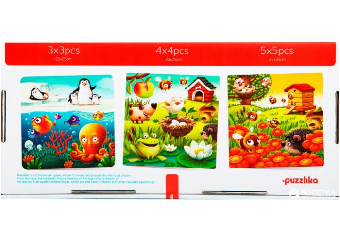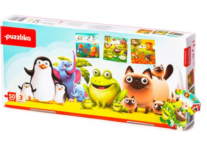 - розвиваючий пазл Puzzlika 3 в 1 Улюблені тварини 50 елементів - пазли з 3 окремих картинок.