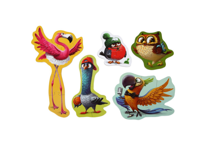 - розвиваючий пазл Puzzlika 5 в 1 "Пташки", на 25 елементів - пазли з 5 окремих картинок. Кожна має різну кількість елементів від 3 до 7, загальним числом в 25 штук.