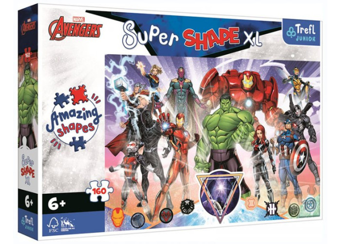 Яскраві і барвисті пазли "Відважні Месники" на 160 елементів. Виготовлені з якісного, щільного картону. Розвивають логічне мислення, дрібну моторику рук, посидючість.