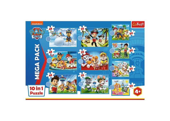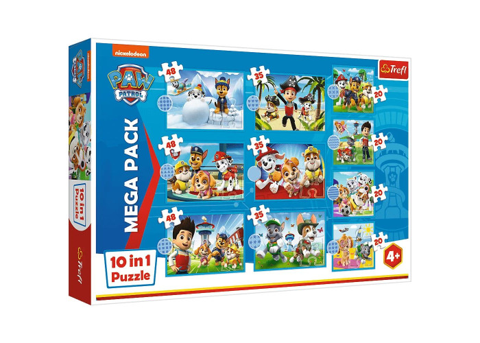 Для всіх шанувальників мультфільму «Щенячий патруль» створені пазли «Надійна команда Щенячий патруль», що складаються з 10 незалежних головоломок. Після вирішення головоломки будуть створені картинки розміром 223x156 мм і 167x156 мм. Різноманітність елементів дозволяє грати як маленьким, так і трохи старшим дітям.