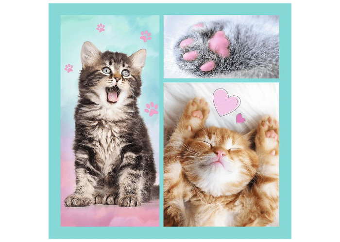 Три пазли різного розміру зображують милих кішечок. Завдяки різноманітній кількості елементів пазли принесуть задоволення як дітям молодшого віку, так і дітям трохи старше.