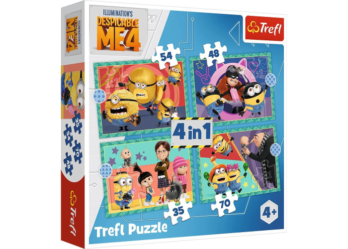 Різна кількість елементів (35-48-54-70) дозволяє грати як молодшим, так і трохи старшим дітям. Після складання пазлів отримаєте чотири зображення розміром 285 х 205 мм.