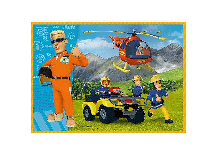 Відважний Пожежний Сем - дитяча головоломка, що складається з 4 незалежних пазлів, призначена для всіх маленьких фанатів і шанувальників відважного Пожежного Сема. Після складання пазла буде створено чотири картинки розміром 285 х 205 мм кожна. Різноманітність елементів (54, 48, 35, 70) дозволяє весело провести час як маленьким, так і трохи старшим шанувальникам головоломок.