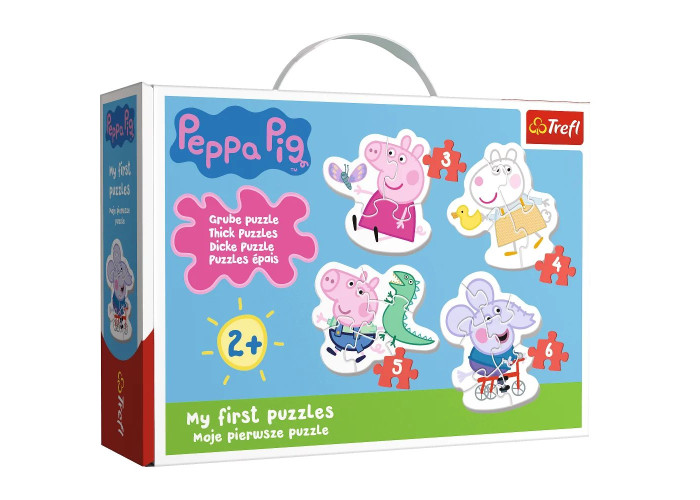 Дитячі пазли зі Свинкою Пеппою - це великі пазли із щільного картону, призначені для найменших дітей, вони ідеально підходять для початку пригод з розгадування головоломок.