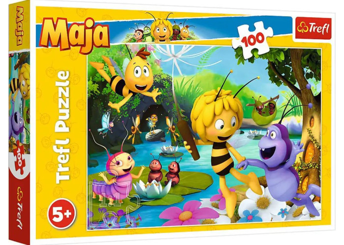 Пазли на 100 елементів із зображенням працьовитої Бджілки Майї та її друзів з популярного австралійсько-німецького анімаційного фільму "Бджілка Майя". У складеному вигляді розмір картинки становить 41х28 см. Високу якість, насиченість кольорів та безпеку при укладанні пазлів забезпечує спеціальний глазурований (каландрований) картон, який відбиває світло та покритий екологічними фарбами.