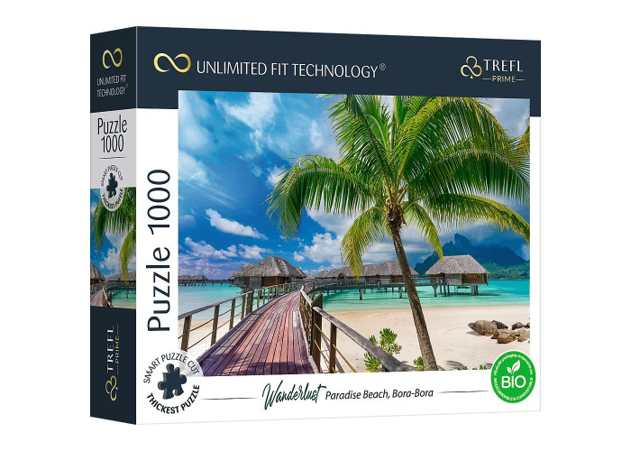 Пазли із серії Trefl Prime UFT, що складається з 1000 деталей, присвячені справжнім аматорам головоломок. Пазли зображають райський пляж Парадайз, Бора-Бора. Після укладання буде створено картину розмірами 683х480 мм.