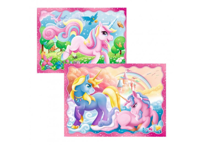 Яскраві і барвисті пазли Чарівний світ єдинорогів 4в1 на 35, 48, 54 і 70 елементів. Виготовлені з якісного, щільного картону. Розвивають логічне мислення, дрібну моторику рук, посидючість.