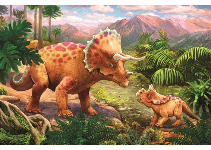 Яскраві і барвисті пазли динозаври Тиранозаври на 54 елементів. Виготовлені з якісного, щільного картону. Розвивають логічне мислення, дрібну моторику рук, посидючість.