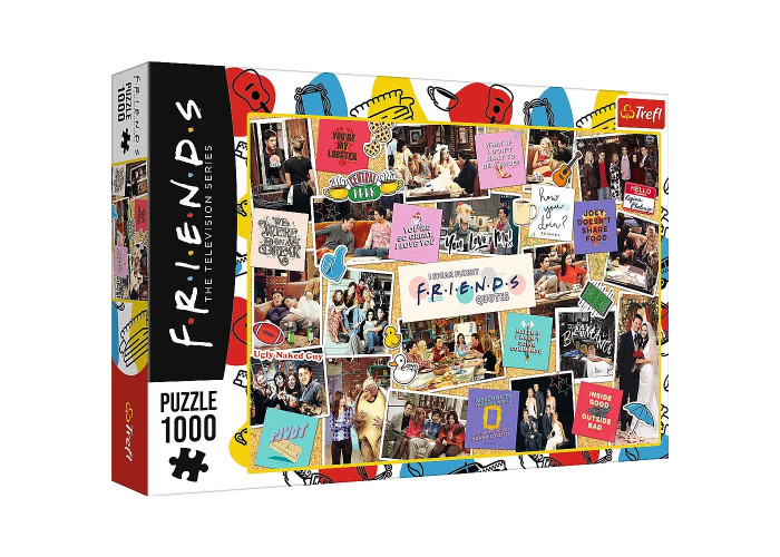 Пазли на 1000 елементів створені для всіх любителів культового серіалу Друзі. У головоломці кращі моменти з епізодів. Після складання пазла вийде картинка розміром 683х480 мм.