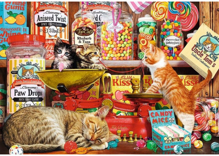 Яскраві і барвисті пазли Котячі солодощі на 1000 елементів. Виготовлені з якісного, щільного картону. Розвивають логічне мислення, дрібну моторику рук, посидючість.