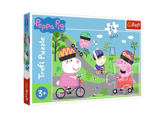 Активний день Свинки Пеппи - це пазл, що складається з 24 MAXI елементів, призначений для шанувальників мультфільму Свинка Пеппа. Після укладання вийде малюнок розміром 600х400 мм.