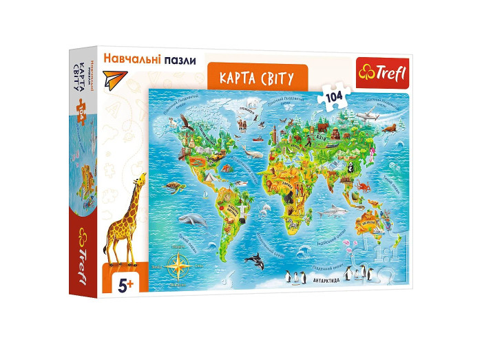 Пазли Trefl навчальні Карта світу (українська версія) 104ел. (TF15566) – популярна дитяча іграшка з категорії Пазли, яка подарує багато радості та позитивних емоцій дитині. М’які іграшки допомагають розвивати уяву, емоційність та створюють відчуття затишку. Вони стають улюбленими друзями малюків та чудово підходять для гри і відпочинку. Переваги іграшки: • м’які та приємні матеріали • безпечний наповнювач • підходить для дітей різного віку • чудова ідея для подарунка Замовляйте Пазли Trefl навчальні Карта світу (українська версія) 104ел. (TF15566) у магазині Green Farm з доставкою по всій Україні.Характеристики