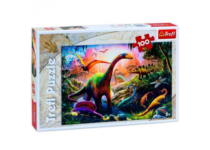Яскраві і барвисті пазли Планета динозаврів на 100 елементів. Виготовлені з якісного, щільного картону. Розвивають логічне мислення, дрібну моторику рук, посидючість.