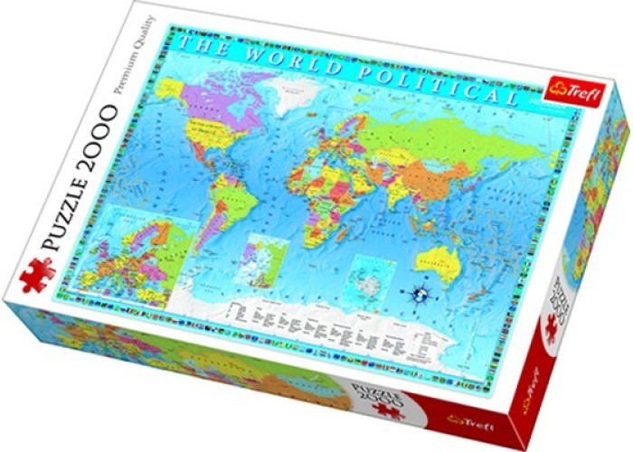 Яскраві і барвисті пазли Політична карта світу на 2000 елементів. Виготовлені з якісного, щільного картону. Розвивають логічне мислення, дрібну моторику рук, посидючість.
