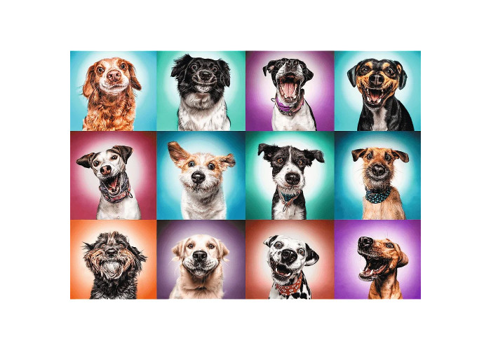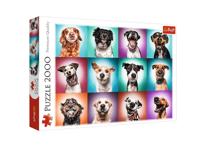 Пазл на 2000 елементів із забавними портретами собак. Після аранжування буде створено зображення розміром 961х682 мм.