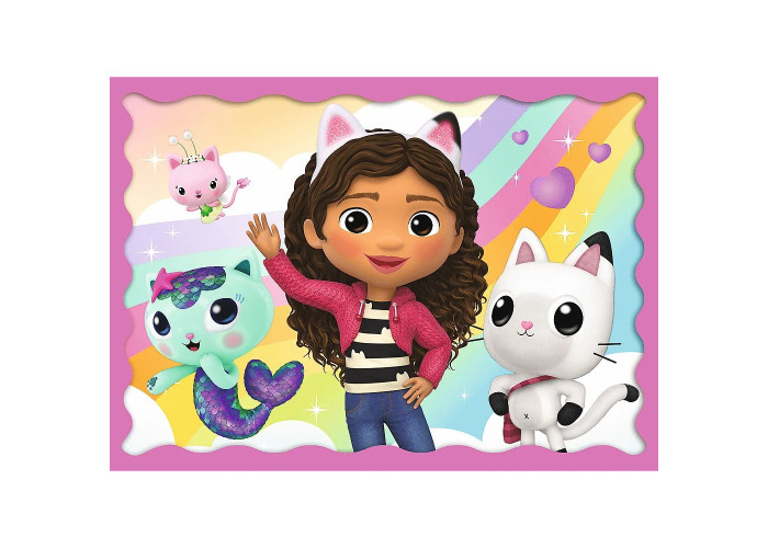 Пригоди Габі 4 в 1 — набір із чотирьох пазлів для дітей від Trefl. Ці пазли зображують пригоди Габі з популярної казки «Будинок кота Габі». Кожен із чотирьох пазлів має різну кількість елементів (35, 48, 54 та 70 елементів), що дозволяє поступово вводити дитину у світ пазлів.