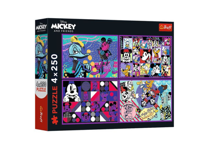 Ця колекція складається з чотирьох окремих пазлів, кожен з яких містить 250 елементів. Вони створені для всіх шанувальників Міккі Мауса та його друзів, пропонуючи різноманітні пригоди та яскраві ілюстрації.