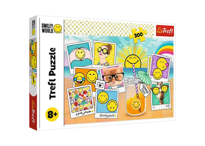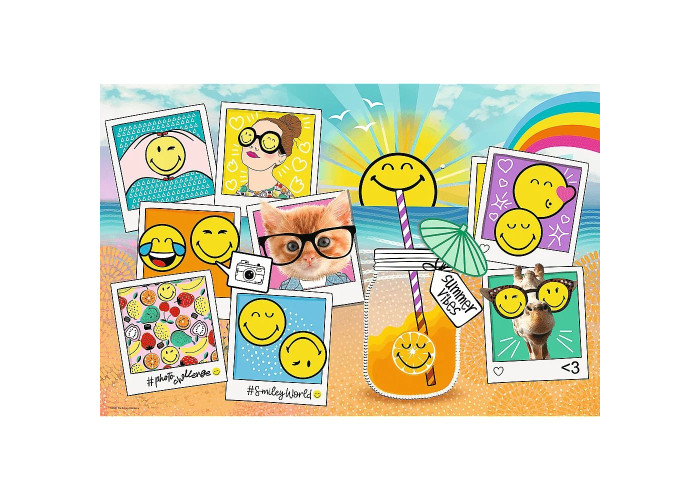 Смайл у відпустці - це пазл із 300 елементів, що зображує символ широкої посмішки Смайлика у святковій атмосфері.