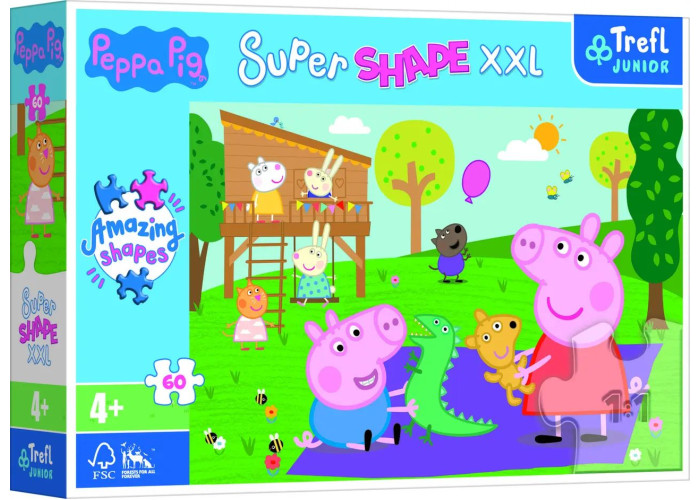 Яскраві і барвисті пазли Супер форми Веселе поросятко на 60 елементів. Виготовлені з якісного, щільного картону. Розвивають логічне мислення, дрібну моторику рук, посидючість.