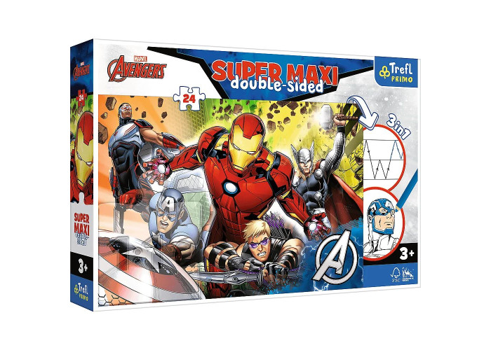 Пазли серії Strong Avengers - Prime - це три гри в одному продукті! Великий двосторонній пазл для маленьких дітей від 3 років - ідеальний для дітей, які знайомі з розгадуванням меншої кількості елементів. Пазл розділений на 24 великі частини. На зворотному боці кожного пазла є дві гри - книжка-розмальовка та гра з елементами розмальовки - виклик для справжніх розумників!