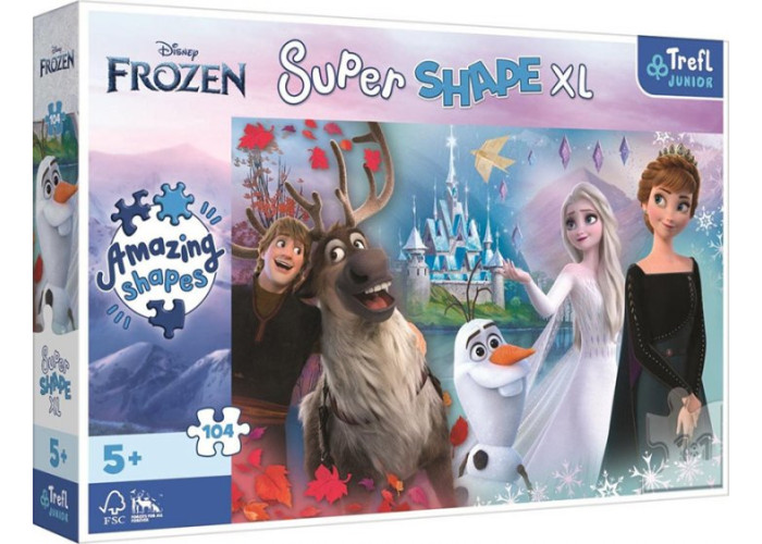 Яскраві і барвисті пазли "Світ Анни та Ельзи" на 104 елементів. Виготовлені з якісного, щільного картону. Розвивають логічне мислення, дрібну моторику рук, посидючість.