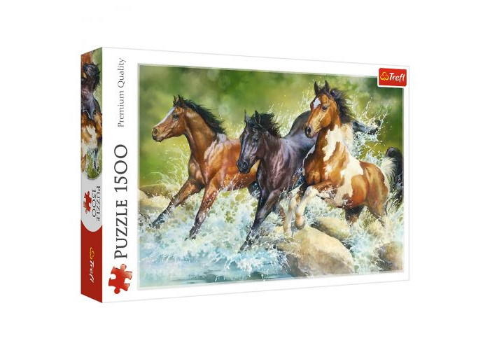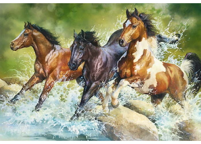 Яскраві і барвисті пазли Три диких коня на 1500 елементів. Виготовлені з якісного, щільного картону. Розвивають логічне мислення, дрібну моторику рук, посидючість.