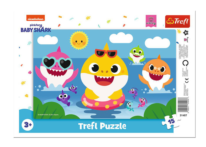 Пазл в рамці, що складається з 15 елементів, створений для всіх шанувальників Baby Shark. Після складання пазла вийде картинка розміром 258х159 мм. Рамка, в яку вкладено пазли, полегшує дітям молодшого віку розставляти малюнок і дозволяє безпечно носити пазл, завдяки чому ми легко можемо прикрасити ним кімнату.