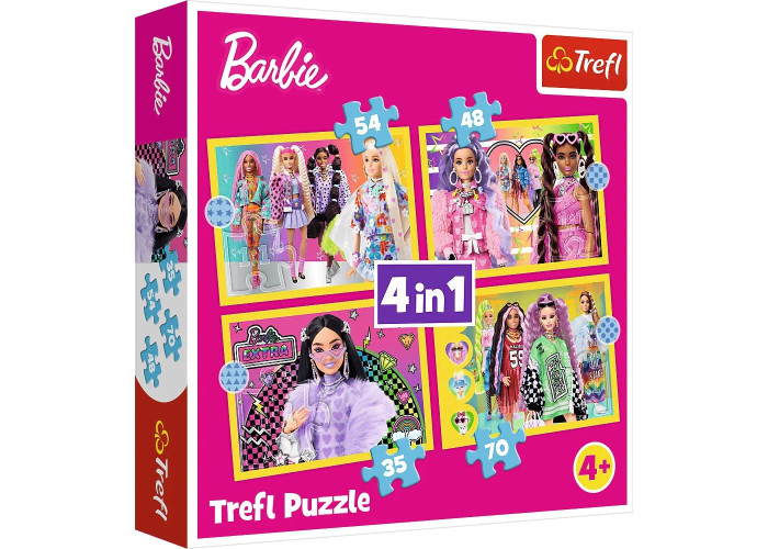 Веселий світ Барбі - це дитяча головоломка, що складається з 4 незалежних головоломок, призначених для всіх шанувальників Барбі. Після вирішення головоломки буде створено чотири картинки розміром 285 x 205 мм кожна. Різноманітна кількість елементів (35, 48, 54, 70) дозволяє розважитися як маленьким, так і трохи старшим шанувальникам головоломок.