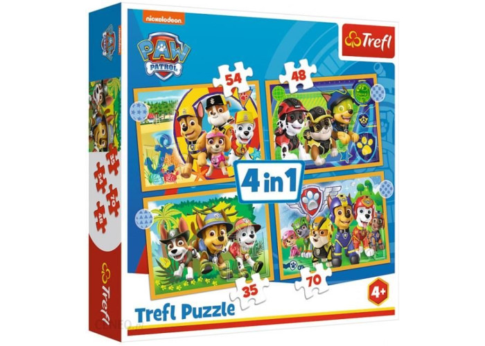 Яскраві і барвисті пазли Відпочинок Щенячий патруль 4в1 на 35, 48, 54 і 70 елементів. Виготовлені з якісного, щільного картону. Розвивають логічне мислення, дрібну моторику рук, посидючість.