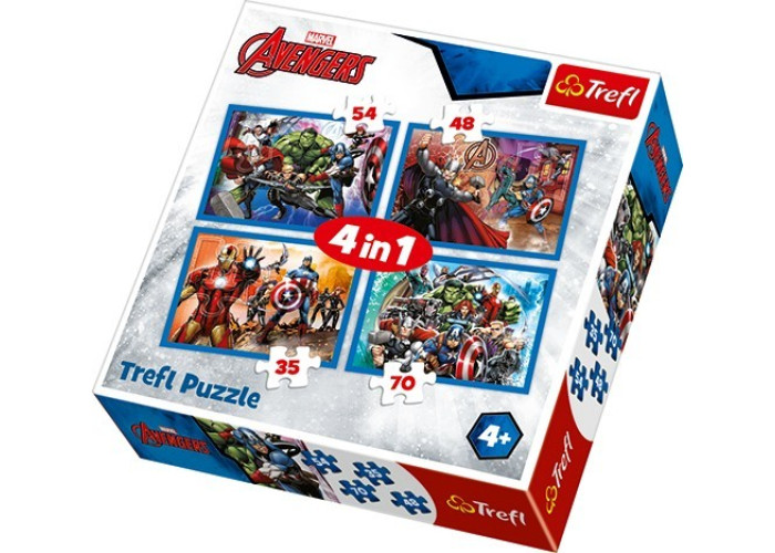 Яскраві і барвисті пазли Відважні месники, Марвел 4в1 на 35, 48, 54 і 70 елементів. Виготовлені з якісного, щільного картону. Розвивають логічне мислення, дрібну моторику рук, посидючість.