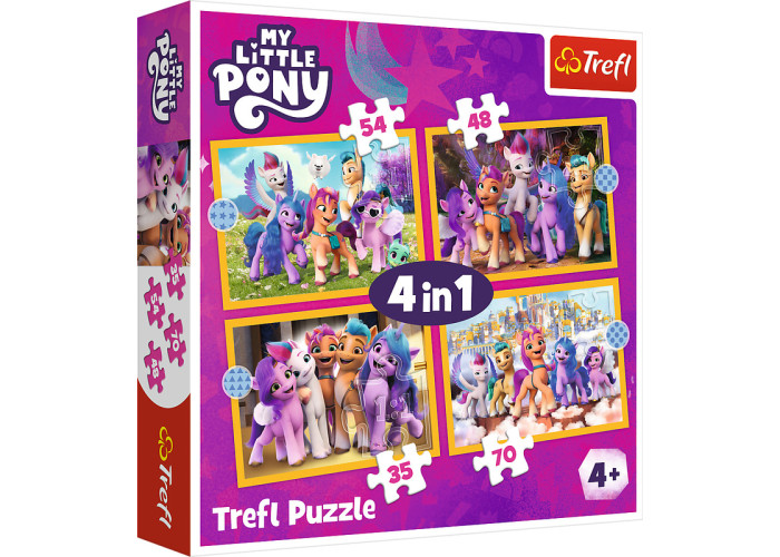Пазли 4 в 1 на 35, 48, 54 та 70 елементів в одній упаковці.