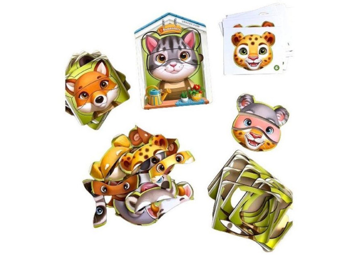 Розміри: 15 х 11 х 6 см. У наборi 39 деталей та 13 карток з тваринами.