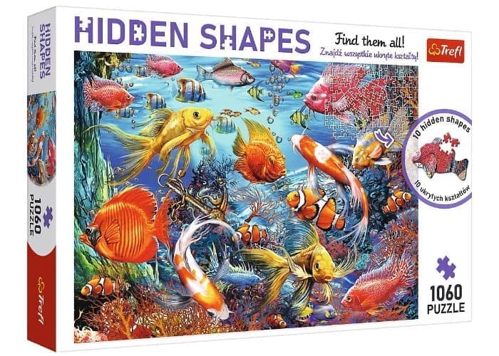 Пазл Trefl Hidden shapes "Підводне життя" на 1060 елемента – це подвійна доза веселощів. Вирішуйте головоломки та відкривайте сховані форми. "Підводне життя" ховає 10 унікальних форм, які можна побачити лише після завершення пазла. Складання пазлів розвиває дрібну моторику, мислення, увагу.