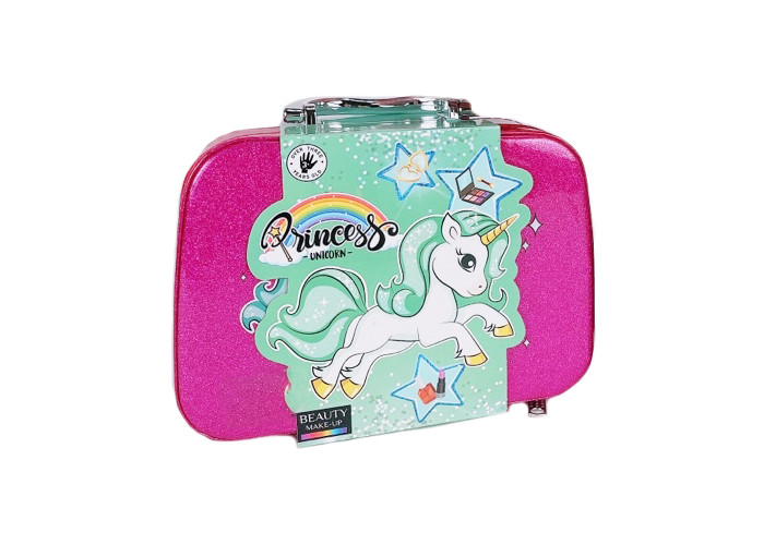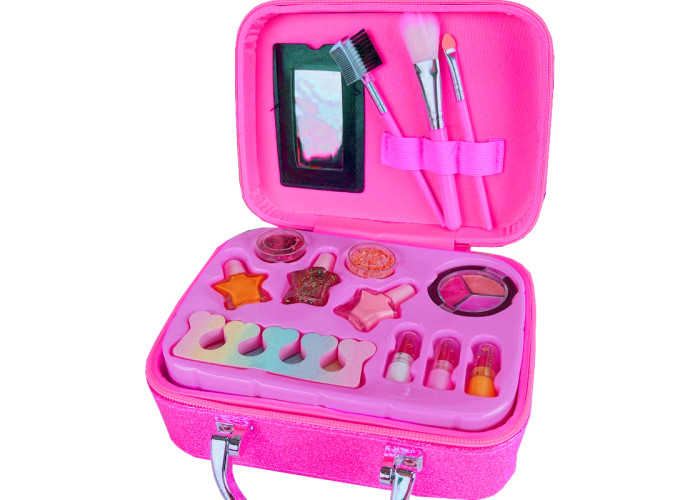 1. Чарівний набір для макіяжу: набір косметики включає в себе 1 рум'яна, 2 світлі блискітки тіні для повік, 3 помади, 3 лаки для нігтів, манікюрний сепаратор, 3 кистей для макіяжу, 1 валізку для зберігання.