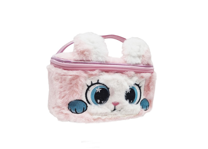 Красива сумочка-косметичка у вигляді милого звірятка. Містка, має зручну ручку і клейончасте дно. Також усередині сумочки на вас чекає сюрприз - невеликий набір дитячої косметики (2 лаки для нігтів, 2 помади, тіні для повік, роздільник для пальців). Розмір сумочки – 9х16х12 см. Запаковано все у прозору коробочку.