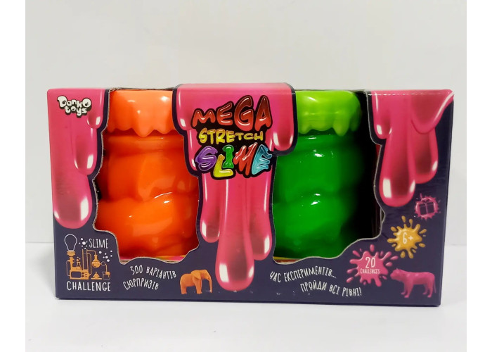 Ми хочемо представити Вам набір "Mega Stretch Slime", у якому Ви знайдете все для створення та гри зі слаймом! В інструкції докладно описано процес створення лизуну, а також 20 інших частин, які ми пропонуємо Вам виконати. Експериментуйте граючи!
