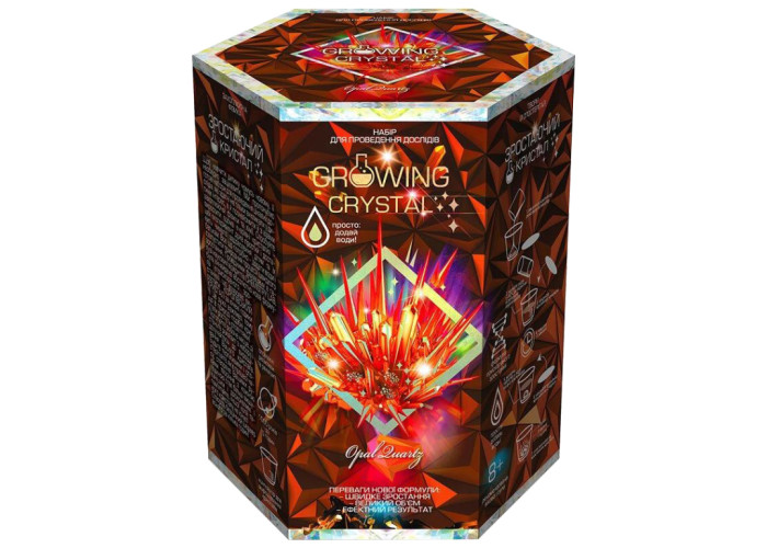 Цікавий дитячий набір для дослідів GROWING CRYSTAL GRK-01, рекомендований для юних допитливих дослідників і любителів експериментів від восьми років, приверне увагу і хлопчиків, і дівчаток. За допомогою спеціальних матеріалів і приладдя Ваша дитина зможе самостійно виростити в домашніх умовах справжні магічні кристали. Захоплююче заняття викличе захват не тільки у дітей, але і здивує дорослих. Щоб отримати зростаючі кристали, необхідно помістити заготовлені кольорові елементи в спеціальний розчин, після чого почнеться дивовижний процес. Набір містить усі необхідні деталі, пристосування і матеріали, включаючи пластикову ємність, картонну заготовку, «рідкі кристали» і розчин для їх вирощування, а також детальну інструкцію. Незвичайна гра допоможе прищепити дитині любов до хімії, познайомить його з новими для нього природними явищами, розширить кругозір, посприяє розвитку уяви і логічного мислення.