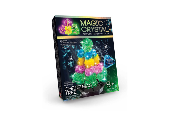 Набір для проведення дослідів "MAGIC CRYSTAL" Різдвяна-ялинка. Вирощування кристалів - дуже цікаве заняття, причому займатися ним можуть не тільки хіміки і фізики, а й звичайні школярі, і навіть дорослі. Зрозуміло такі досліди треба проводити тільки під наглядом дорослих і тільки з безпечними речовинами. У природних умовах такі кристали ростуть не один рік і навіть не одну сотню років, а и вас є можливість виростити це чудо протягом декількох годин.